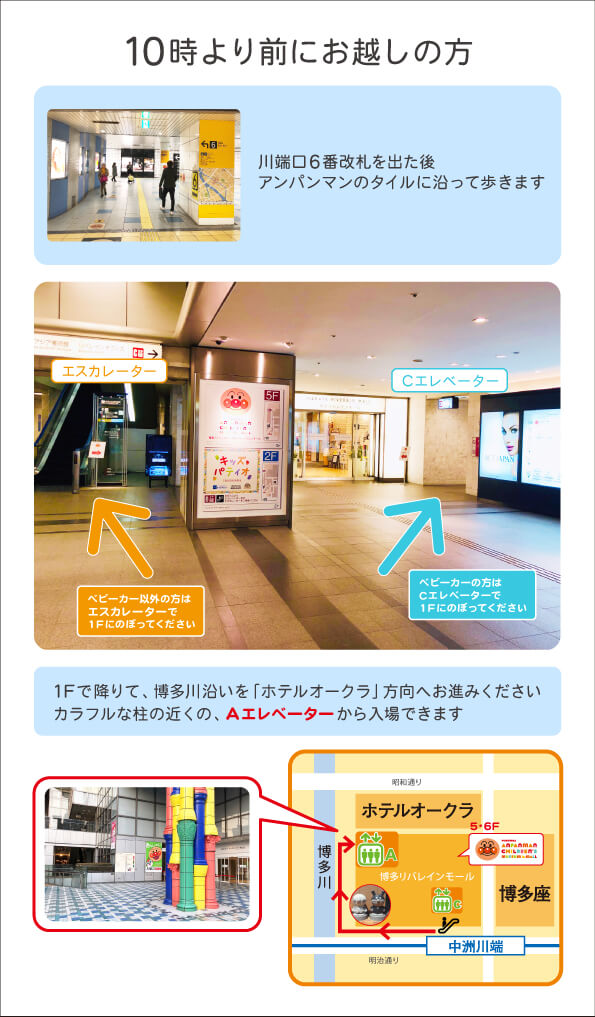 オープン時間の約20分前より1FのAエレベーターから5Fへご案内します。