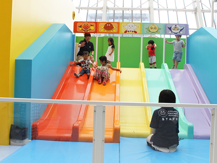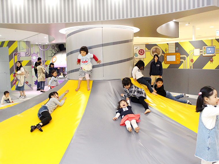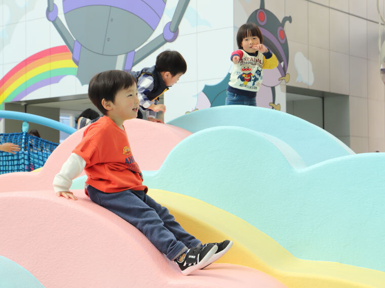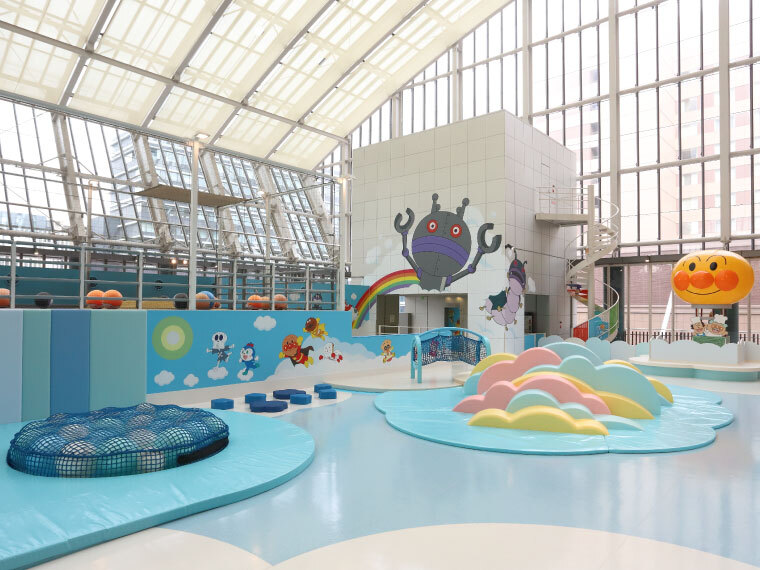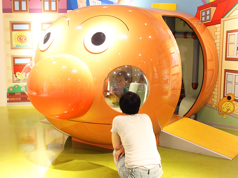 ばいきんまんが作ったひみつ基地。大きなトランポリンで思いっきり体を動かして遊ぼう♪覗くとばいきんまんの仲間にされちゃうコントロールパネルも!