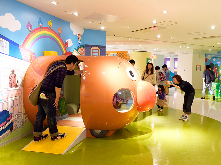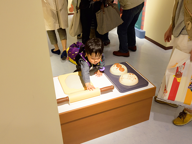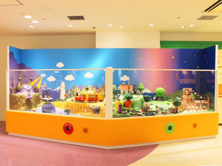 アンパンマンの世界のあちこちがジオラマになっているよ。あちこちからのぞいてみよう!